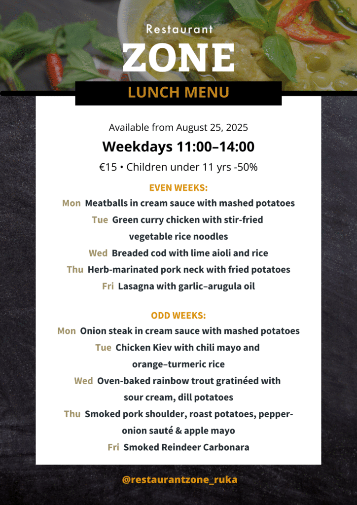 Start your day strong or recharge in the middle of your Ruka adventures – our hearty buffet meals at Restaurant Zone keep you going from slopes to après-ski and everything in between.